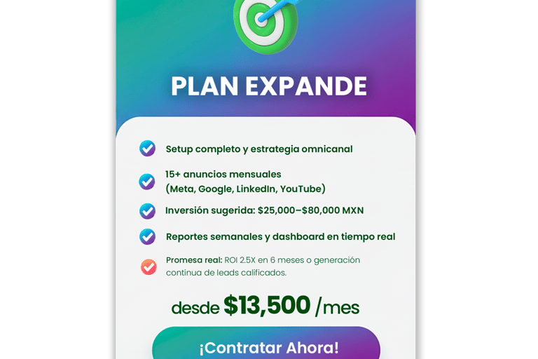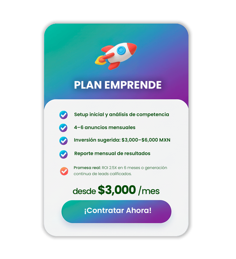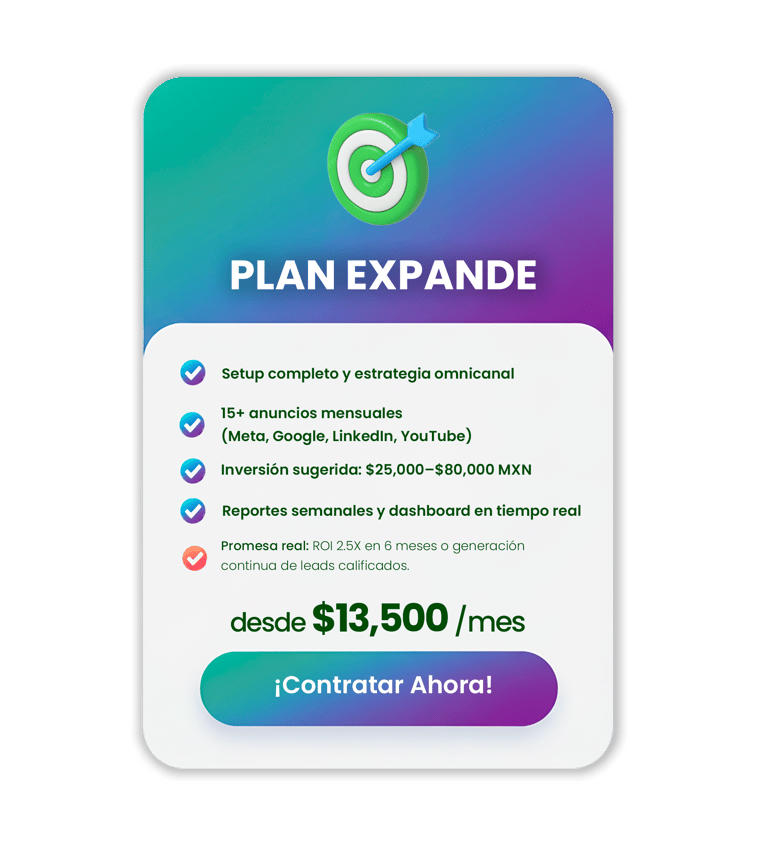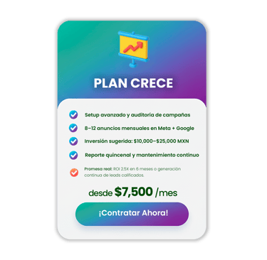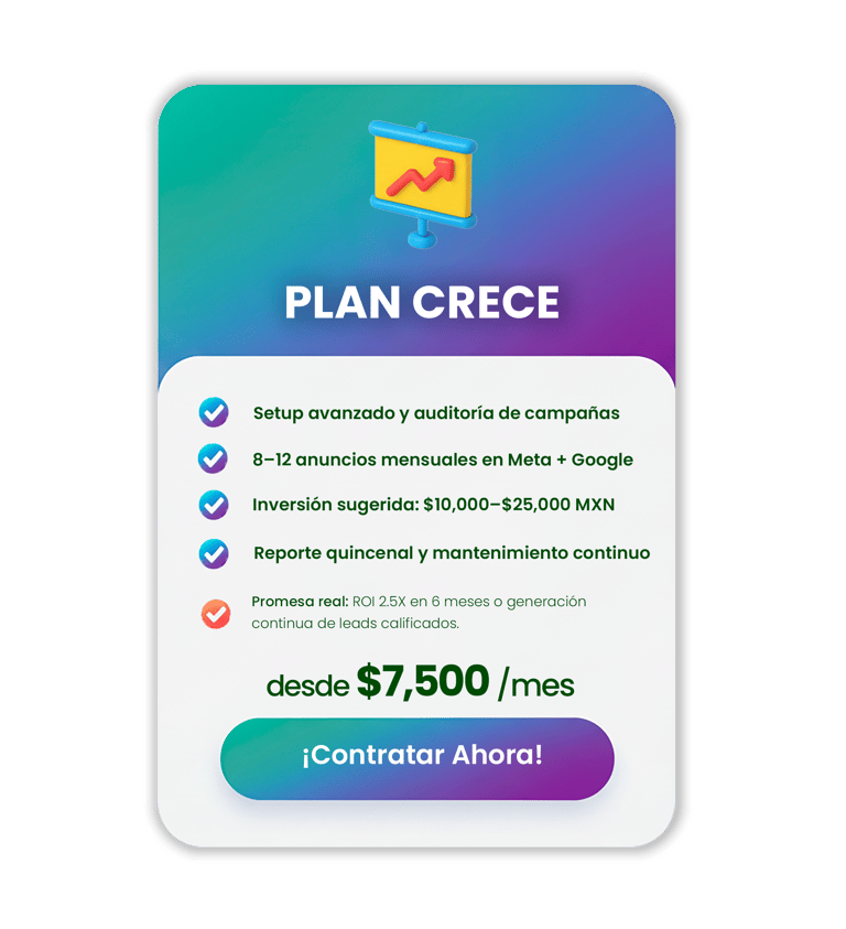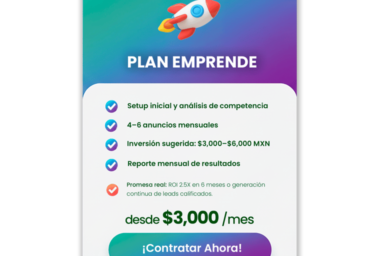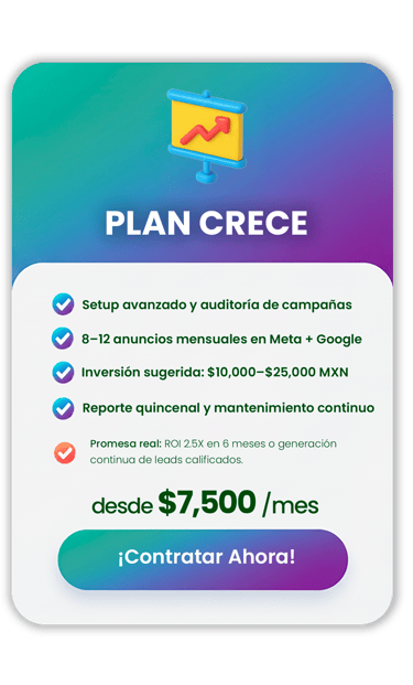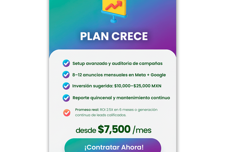 Ofrecemos paquetes personalizados que incluyen desde la creación de campañas y segmentación avanzada, hasta seguimiento automático de conversiones y reportes claros.